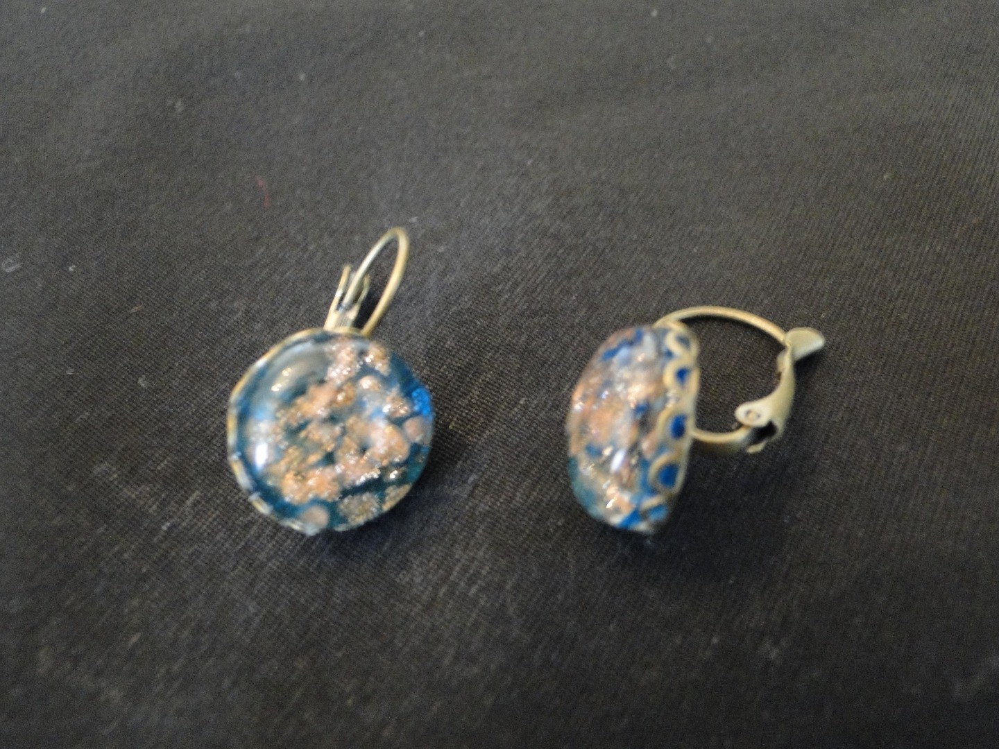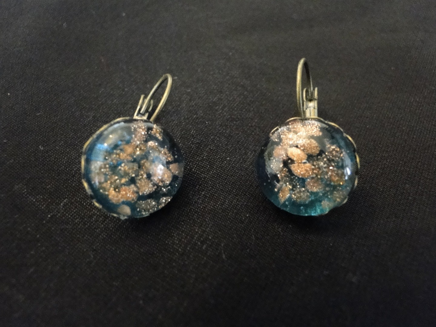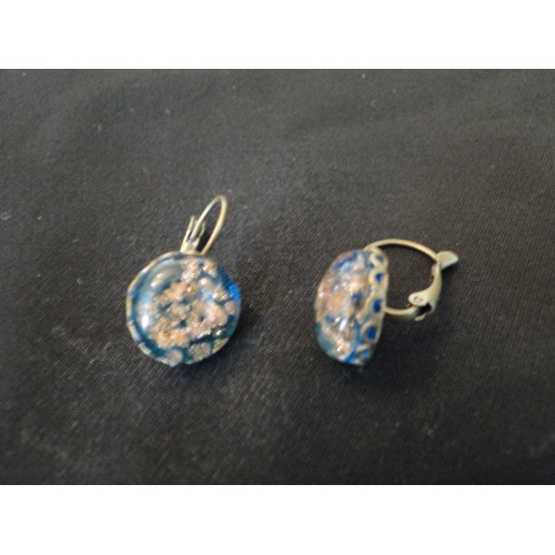 cabochons en verre bleu pailleté